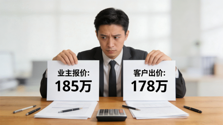 2. 议价逻辑混乱,沦为“单纯的传声筒”:议价环节是最容易产生矛盾的地方,购房者想压价,业主想保价,经纪人夹在中间,一旦处理不好就会两头不讨好。有的经纪人一味帮客户压价,惹得业主反感;有的则过度维护业主,让客户觉得不被重视;更有甚者,面对双方的价格分歧,不知道该怎么协调,只能来回传话,最后让议价陷入僵局。